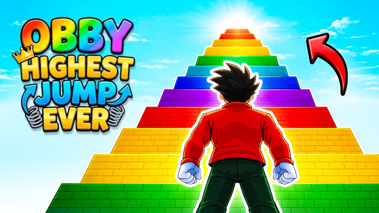 Obby Highest Jump Ever is a fun climbing game where players build jump power, scale massive towers, collect trophies, unlock pets, and explore sky-high islands.